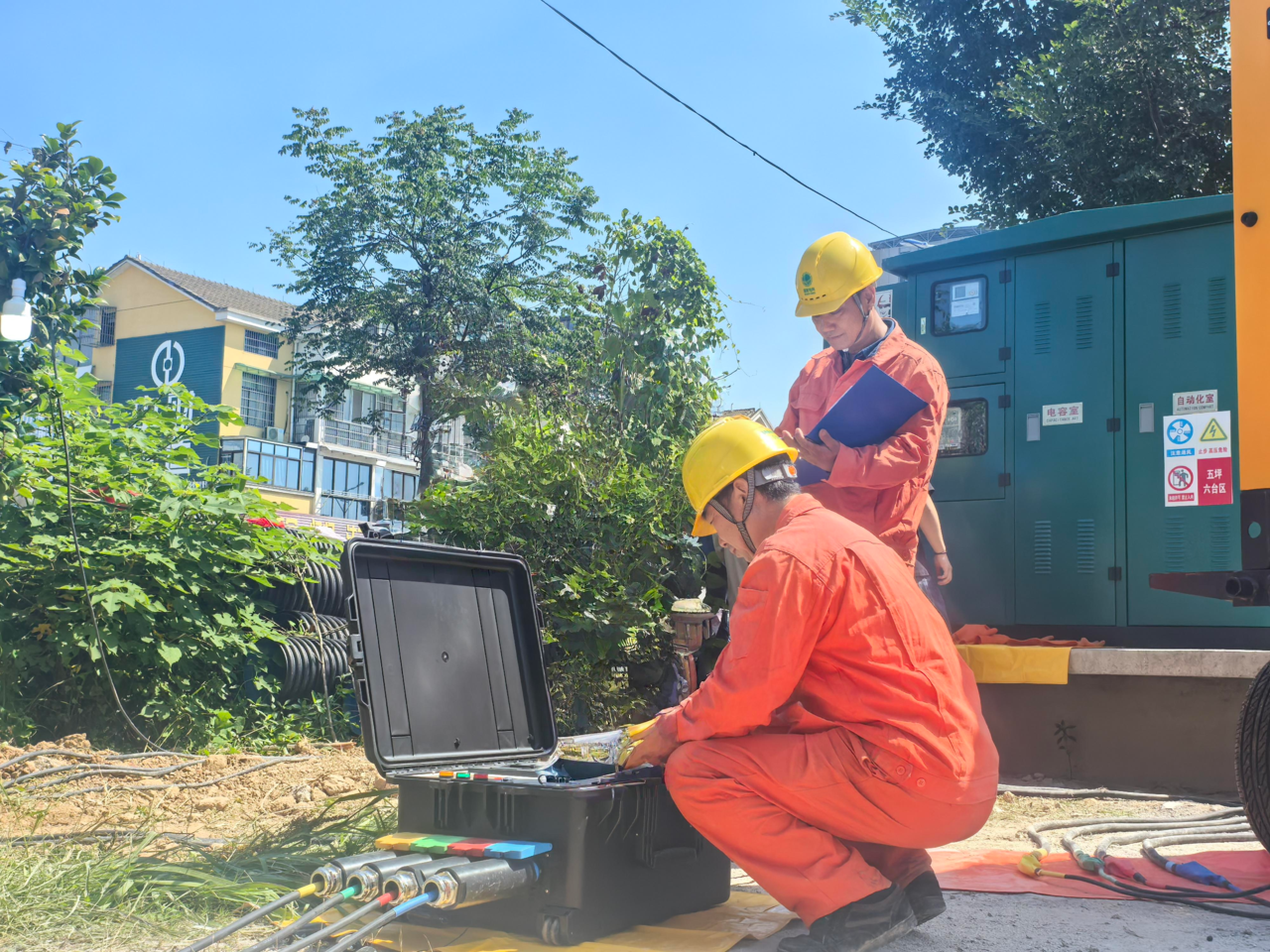 在五坪自然村作业现场,首个环节是变压器更换“实战”。工作人员提前完成现场勘查,确认发电车容量为100千伏安。通过低压二次同期并网技术,发电车与电网实现无缝衔接后,老旧变压器被快速更换,期间,村民的电视机、冰箱等电器始终正常运行。现场展示的“电力神器”——便携式二次同期装置尤为引人注目。该装置利用高精度电压相位检测与毫秒级并网控制技术,在负荷电流“无缝切换”中完成设备更换,确保电力供应“不断流”。